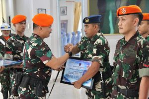 Pen Pancawara – Danyonko 469 Korpasgat Letkol Pas Jhon H Siregar memimpin langsung serah terima jabatan Komandan Kompi Senapan C