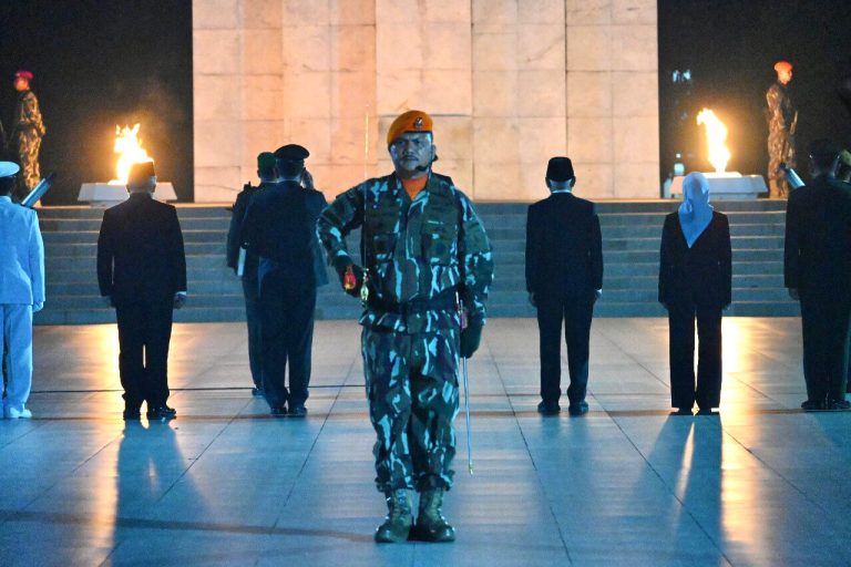 DANYONKO 469 KORPASGAT SEBAGAI KOMANDAN UPACARA APEL KEHORMATAN DAN RENUNGAN SUCI DI TAMAN MAKAM PAHLAWAN BUKIT BARISAN